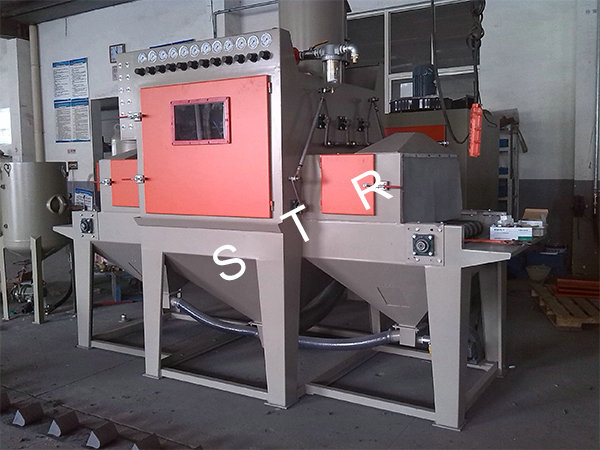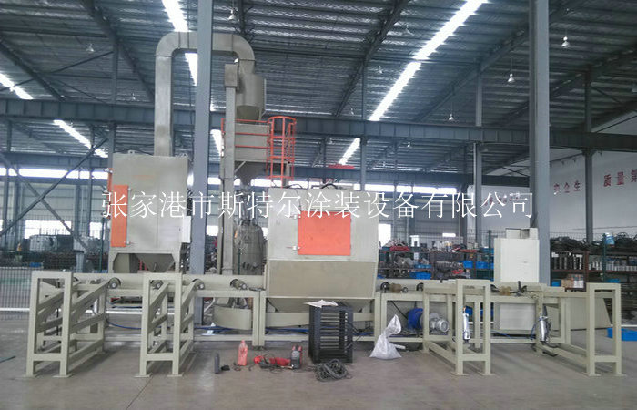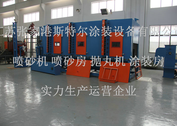 5.斯特爾設計制造的通過式噴砂機可以實現皮帶輸送、鏈條式輸送、滾軸式輸 送、懸掛式輸送等方式結構。