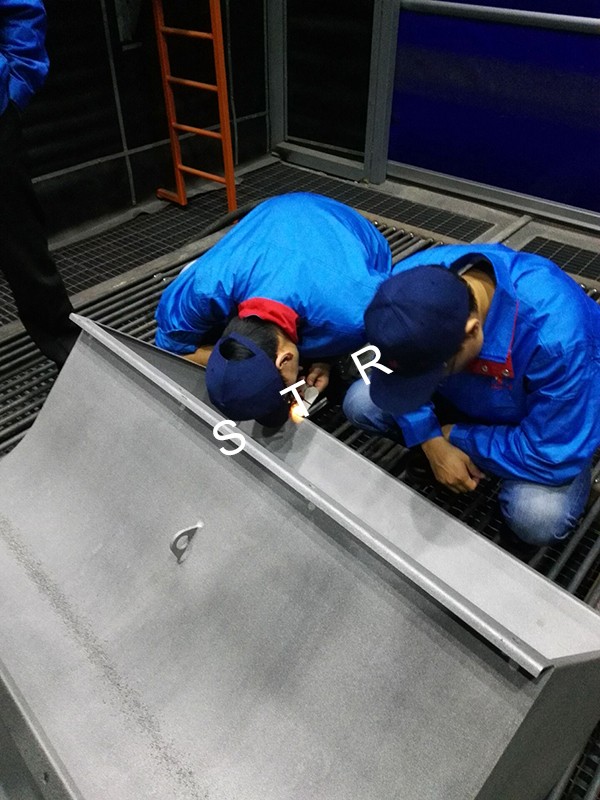 2.6 啟動噴砂機,工人對工件進行全方位手工噴砂;