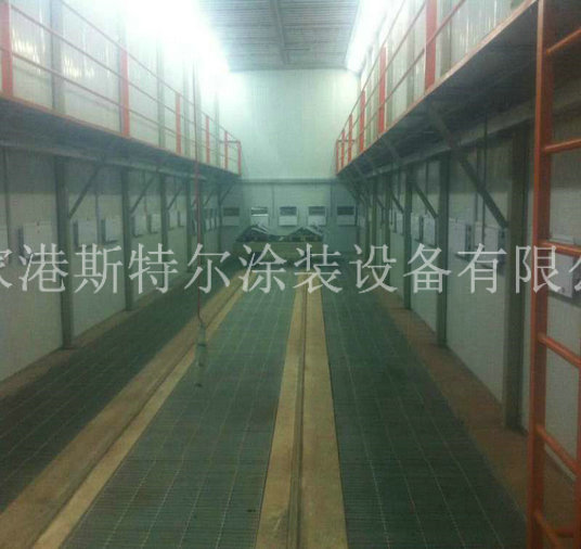 根據客戶要求及工件尺寸,房體工作尺寸設計為18x6x6.5m。本噴砂房體用100mm方管做基本性框架圖,里面用50方管做里面支撐架,里面鋪2mm厚不銹鋼鋼板及3mm塑料件板,上面壁墻用50mm厚彩剛夾心板生產,形狀好看、按照便捷的、玻璃鋼防腐皮實。彩厚不銹鋼鋼板夾心層為聚苯乙稀發泡塑料件,與日常用純厚不銹鋼鋼板加工的