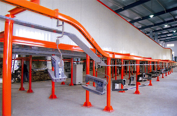傳送機要根據方法工作流程實現合理可行的布局圖設計的,接合各生產步驟(前加工處理、噴粉室、車輛噴漆室、凝固后烘道等),變少作業題技術人員,降低生產期限,提生產生產率。