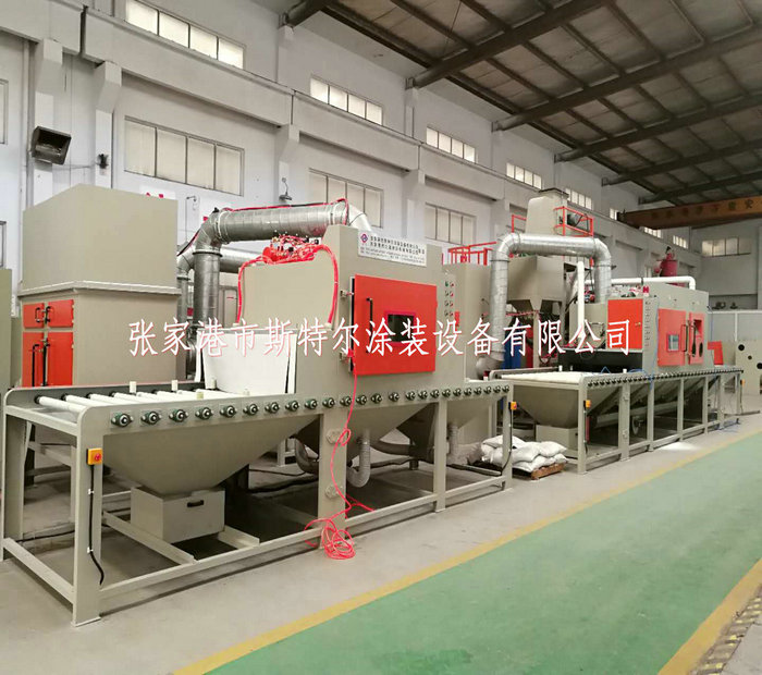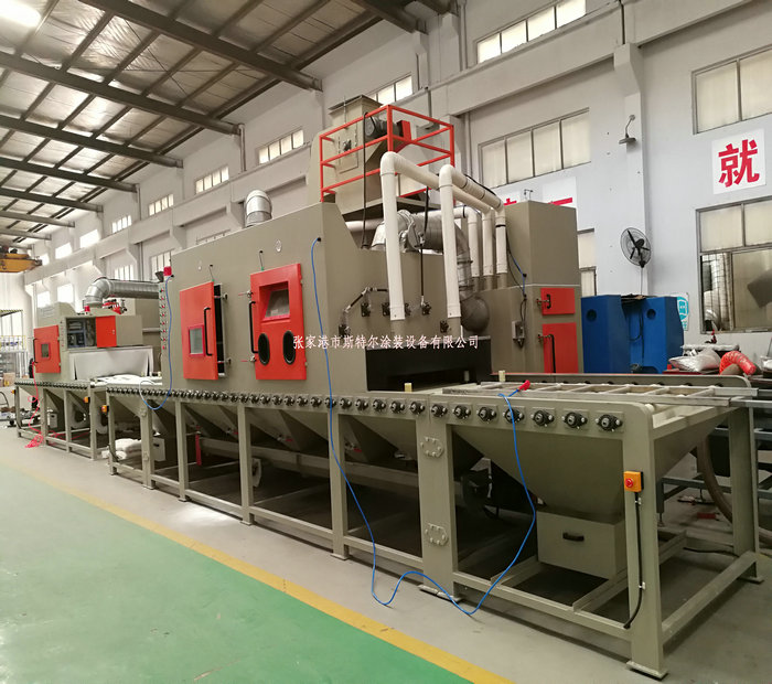 工人只操作噴砂機的控制系統和裝卸工件(或由上下工序的噴砂機的輸送機構輸入或者輸出),需要噴砂的工件放置在噴砂機的輸送機構上會自動運行經過吹氣倉后在通過噴砂工作倉進行表面噴砂處理,表面達到一定的粗糙度及達到除油,除污垢的最終效果,噴砂機加工結束后在經過除塵倉及吹氣倉,最終經過噴砂機的輸送機構運送出來。即噴砂加工結束。經過人工識別檢測后搬離,如工件上面有殘留的砂粒及粉塵時由人工使用吹氣槍清理結束后搬離。一般在噴砂機的一端出口會設計吹氣風刀,達到粉塵及砂料95%以上清除干凈。但是有可能殘留在死角及內孔里的砂料,在這種情況下只有靠人工清理,才可以全部清理結束。 加工制作依次下列: