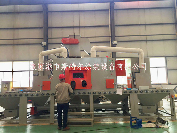 南通市榮力達鋁業四虎影视免费永久大全-四虎8848精品成人免费网站-四虎视频国产精品免费入口-四虎4hu永久免费网站影院位于南通海安縣,主要經營各種鋁材、五金、汽車零部件、電梯零部件、光伏配件等產品,本次定制的輸送式自動噴砂機主要處理鋁材用的,噴砂機的入口寬度為1000*200mm,噴砂槍為16把,輸送方式為包膠托輥自動輸送的,運行速度變頻可調,工作壓力無極可調,大大降低了人工成本,提高了產品質量。該自動噴砂機應客戶產品的要求專門定制的自動化噴砂機,可以達到操作時無死角噴砂加工,可以使普通工人能夠傻瓜式操作噴砂機設備,目前我們在生產噴砂機的同時,也在考慮怎么樣可以讓客戶能夠放心的使用,大膽的使用噴砂機噴砂房設備,因為在設計噴砂機時候如果太過于復雜或者自動化程度太高,這樣會給客人造成麻煩,如果客戶工廠沒有操作噴砂機的熟練工人專用客戶也無法維護,專用就會給我們專業制造噴砂機的廠家造成好多售后問題,售后的問題主要一些工人對設備原理不懂,對噴砂機的構造不了解,不敢下手,非常微小的問題都不敢解決故障,避免這個通常的問題,那么我們在設計噴砂機的時候盡量使用傻瓜式噴砂機械設計思路,我們按照客戶要求,但是有會把可能會出現的車間噴砂房或者噴砂機的故障會一一解釋清楚,我們按照環保設備要求制作,打造高標準的,高環保的,低能耗的設備,為在使用噴砂機的任何一家使用單位解決后顧之憂。